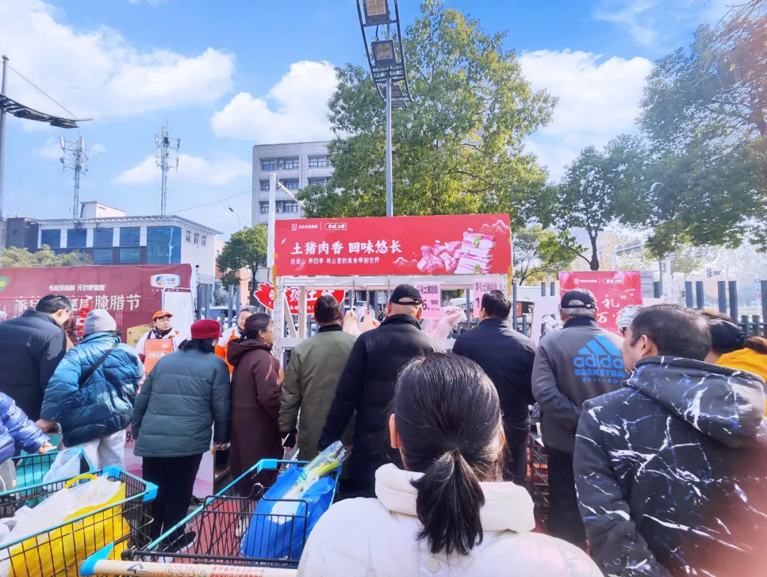 開業(yè)當(dāng)天,零號土豬的試吃臺前人潮涌動,眾多忠實(shí)顧客聞訊而至。顧客們紛紛被其肉質(zhì)鮮嫩、富含硒元素的特色所吸引,對其產(chǎn)品的品質(zhì)贊不絕口,使得零號土豬在眾多豬肉品牌中脫穎而出。其銷售區(qū)更是呈現(xiàn)出門庭若市的景象,消費(fèi)者們爭相選購,為冬至備年貨,場面異?;鸨?。