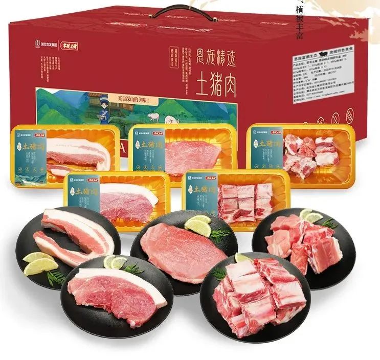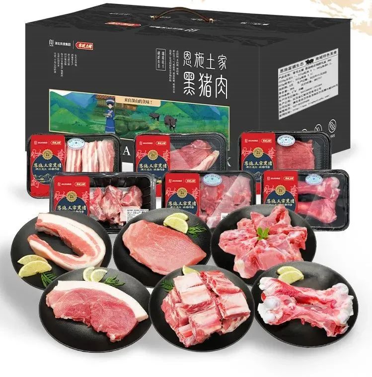 禮盒中的豬肉,均精選自武陵山脈的腹地——恩施來(lái)鳳縣。這里的豬種是土家族世代飼養(yǎng)的原生態(tài)家畜,也有農(nóng)發(fā)畜牧集團(tuán)特有的楚鄉(xiāng)黑豬品種。它們?cè)诟谎?、高濕的深山森林環(huán)境中茁壯成長(zhǎng),主食是玉米、紅薯、南瓜葉等山林富硒農(nóng)作物,肉質(zhì)自然非凡:肥肉不膩,瘦肉間隔細(xì)膩,口感鮮嫩香醇,令人回味無(wú)窮。